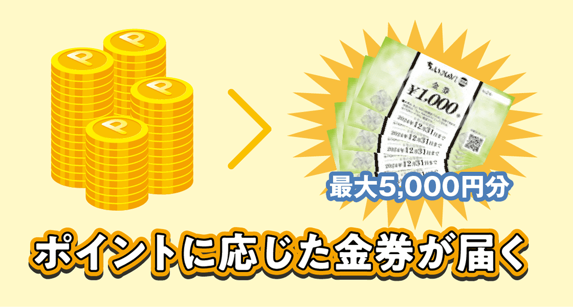 昨年1年間のポイント数に応じて金券を発券いたします。