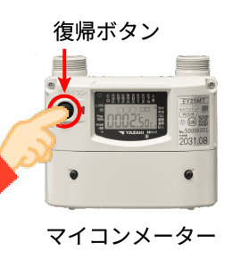 マイコンメーターの復帰ボタンを押してください。(2秒程度)