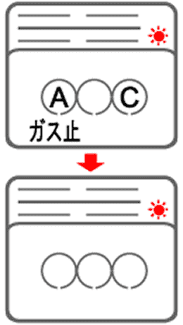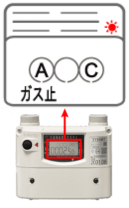 (A)(C)文字と赤ランプの点滅が消えるとガスが使えるようになります。