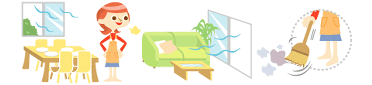 プロパンガスは空気より重いので、掃き出すように出してください。