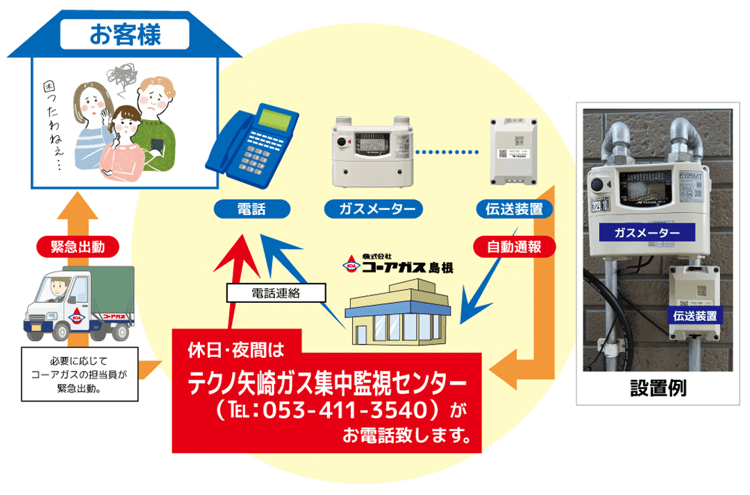※休日・夜間はテクノ矢崎ガス集中監視センター