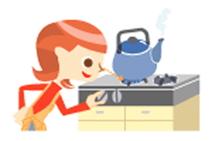 ガス器具を使うときは、燃えやすいものを近くに置かず、煮こぼれや風で火が消えないよう注意しましょう。 調理中はその場を離れず、立ち消え防止や過熱防止機能付きの安全装置付きコンロを使うと安心です。