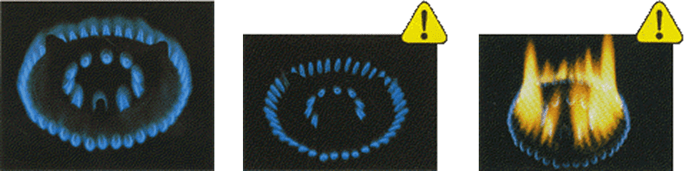 LPガスをご使用になるときは、炎を必ず「青い炎」でお使いください。赤っぽい炎は不完全燃焼している炎です。