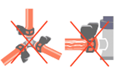 ゴム管はガス栓の赤い部分まで差し込み、ホースバンドで固定してください。長くしすぎたり折り曲げたりせず、三つ又やひび割れたゴム管は使用しないでください。
