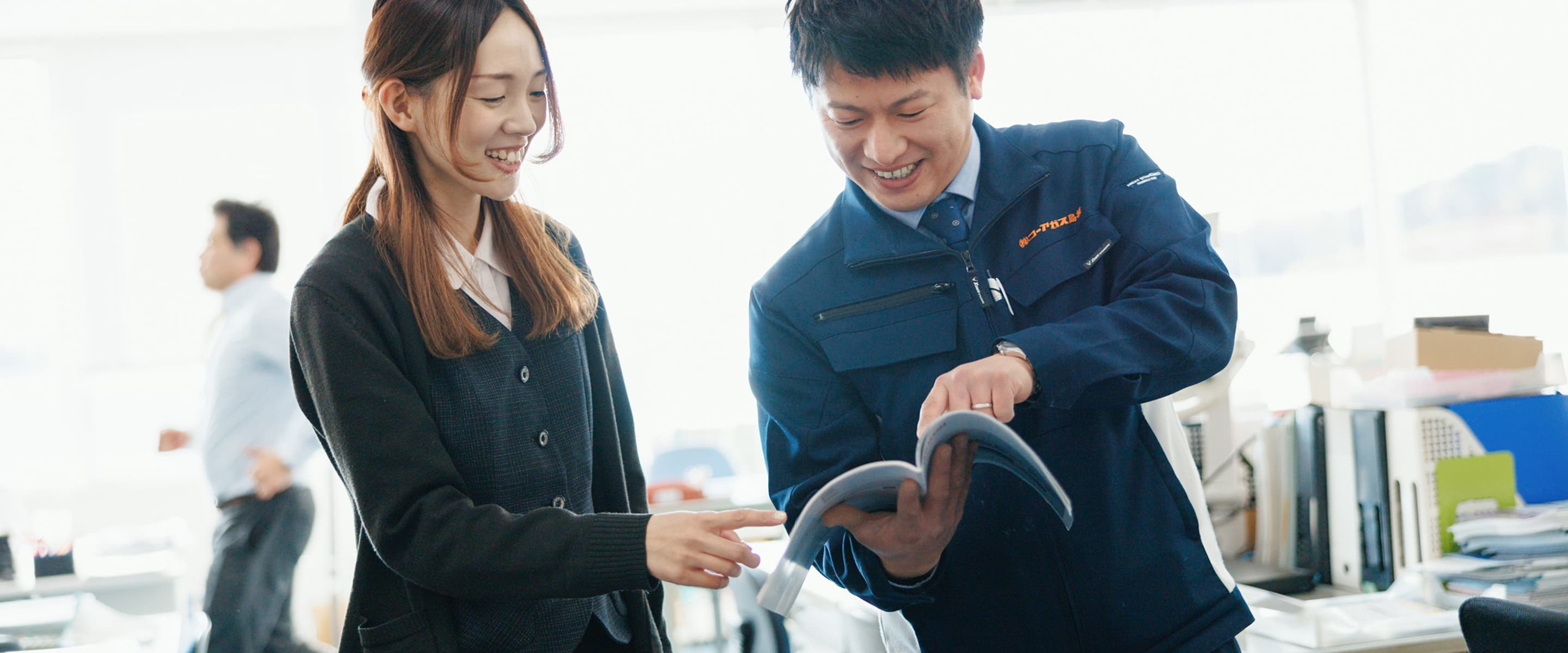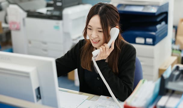 主に電話応対や顧客管理専用ソフトを使った伝票入力、請求書発行、Word・Excelによる書類作成です。ガスや周辺機器に関する基礎知識を学び、お客様からの問合せに迅速に対応できるよう、他部署との連携も必要です。