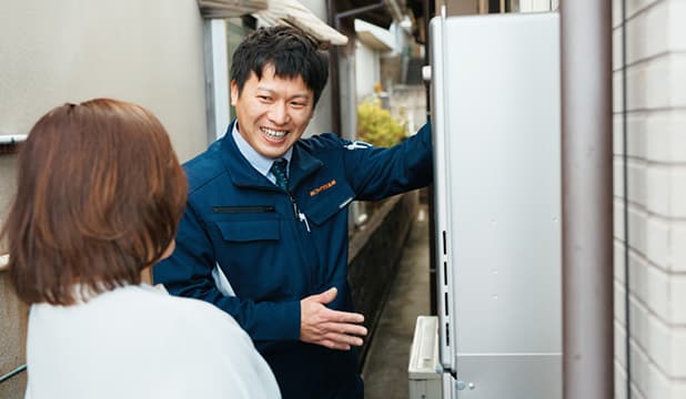 当社の会員様を訪問し、アフターフォローや、ニーズに合った住宅設備機器の提案などをしていただきます。地域に根ざした「生活インフラ企業」なので安定して働けます。