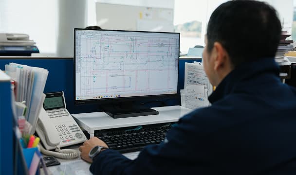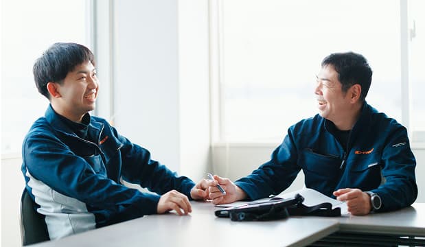 全体的に雰囲気は良いですよ(笑)うちは年齢層も幅広いですが、ありがちな上下関係みたいなものも希薄というか、僕自身ほとんど意識していないですね。特に研修期間を終えた設備課の人間に対しては後輩と思ったことはないです。ひとつの現場を任されれば一人前の職人なので、対職人として接しています。そういう意識が職場のフランクな雰囲気を生み出しているんじゃないかと思いますね。