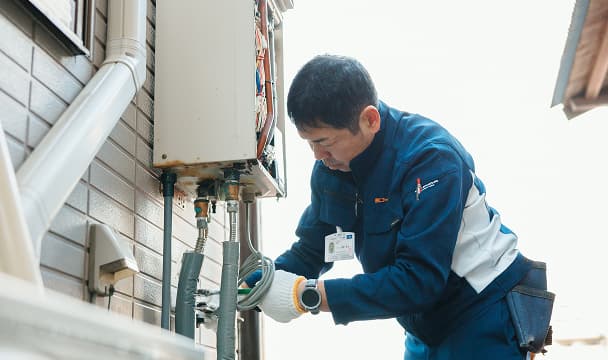 主にお客様宅や新築現場などで、ガス設備や器具設置・取替の工事を行います。ライフラインとして、設備の点検・調査・交換業務もあります。ガス以外にも、水栓取替からエコキュートなどの電気工事まで、住宅設備全般を取り扱っています。